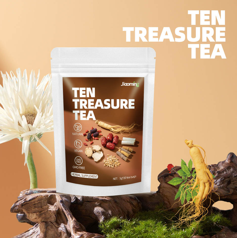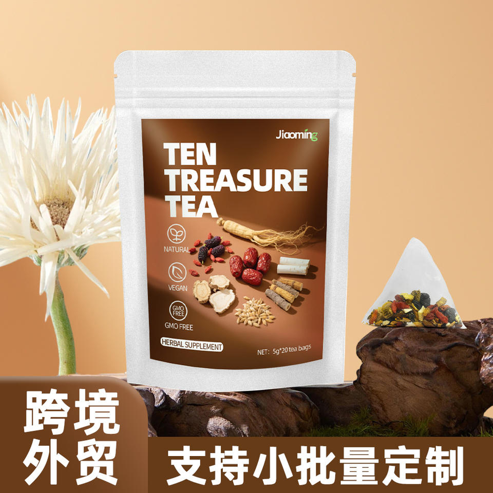 ชาสมุนไพรผสมสิบสมบัติ โสม โกจิเบอร์รี่ มัลเบอร์รี่ พุทราแดง สำหรับการค้าต่างประเทศข้ามพรมแดน บรรจุในถุงชา