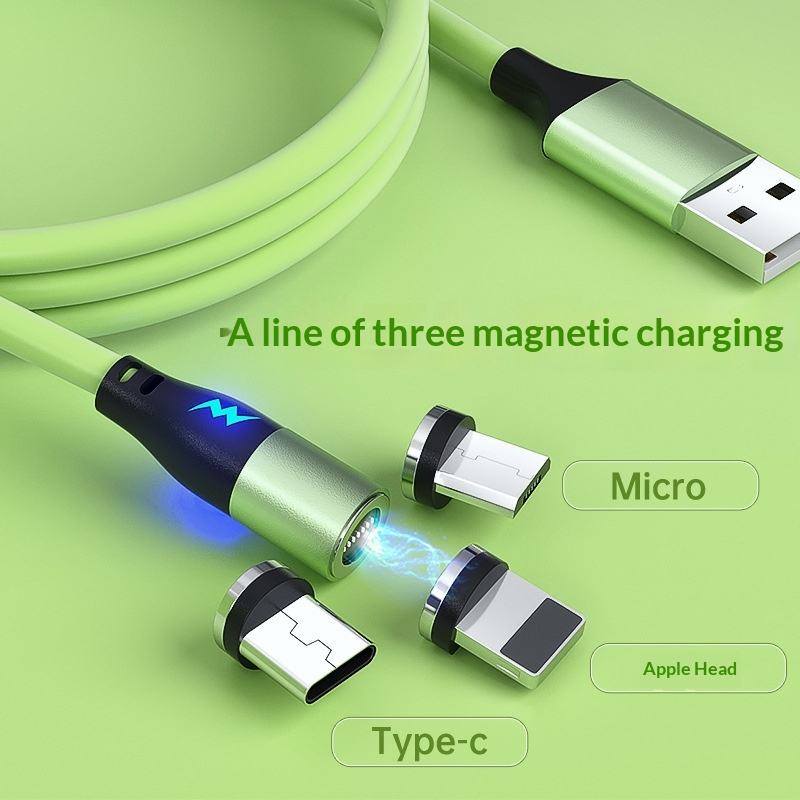 สายชาร์จแม่เหล็กแบบสาม-in-หนึ่ง สำหรับการค้าต่างประเทศ ข้ามพรมแดน สีเขียว 1 เมตร รุ่นมาการอง ชาร์จเร็วสุด