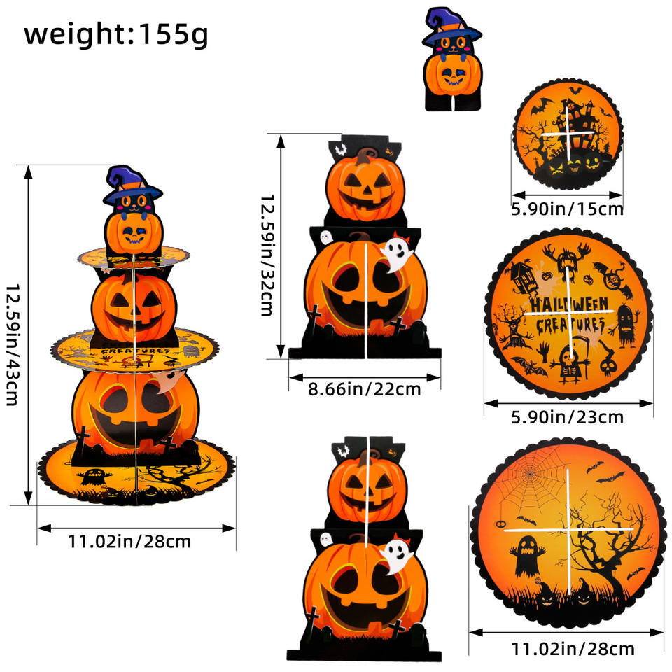 ถาดเค้กกระดาษ3D หลายชั้นลายฟักทองการ์ตูนฮาโลวีนแบบมีหลายชั้นเป็นมิตรกับสิ่งแวดล้อมสำหรับงานปาร์ตี้คริสต์มาส