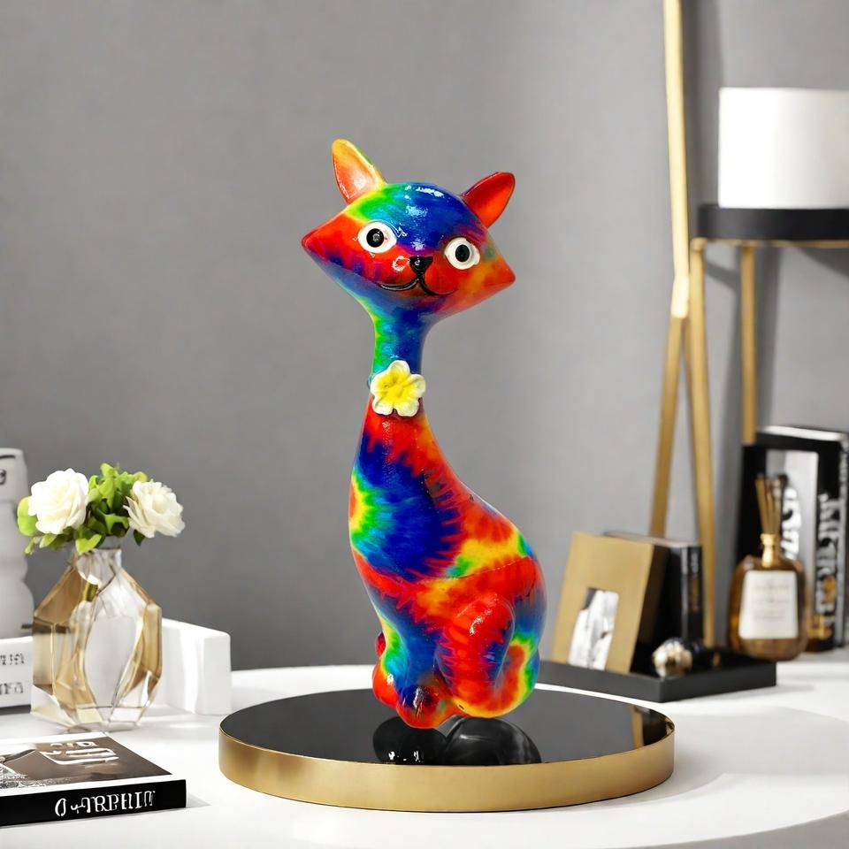 ของตกแต่งรูปแมวกราฟฟิตี้หลากสีสัน สไตล์ศิลปะสมัยใหม่ งานฝีมือเรซิ่นอีพ็อกซี่ สำหรับตกแต่งบ้านและห้องนั่งเล่น ขายดีข้ามพรมแดน