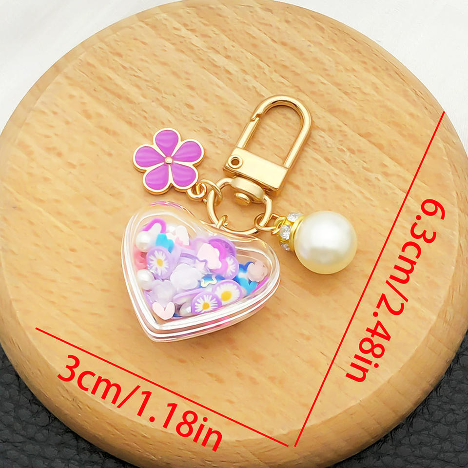 พวงกุญแจรูปตัวยูติดเพชรรูปหัวใจซากุระสีม่วงอะคริลิคใสแบบใหม่