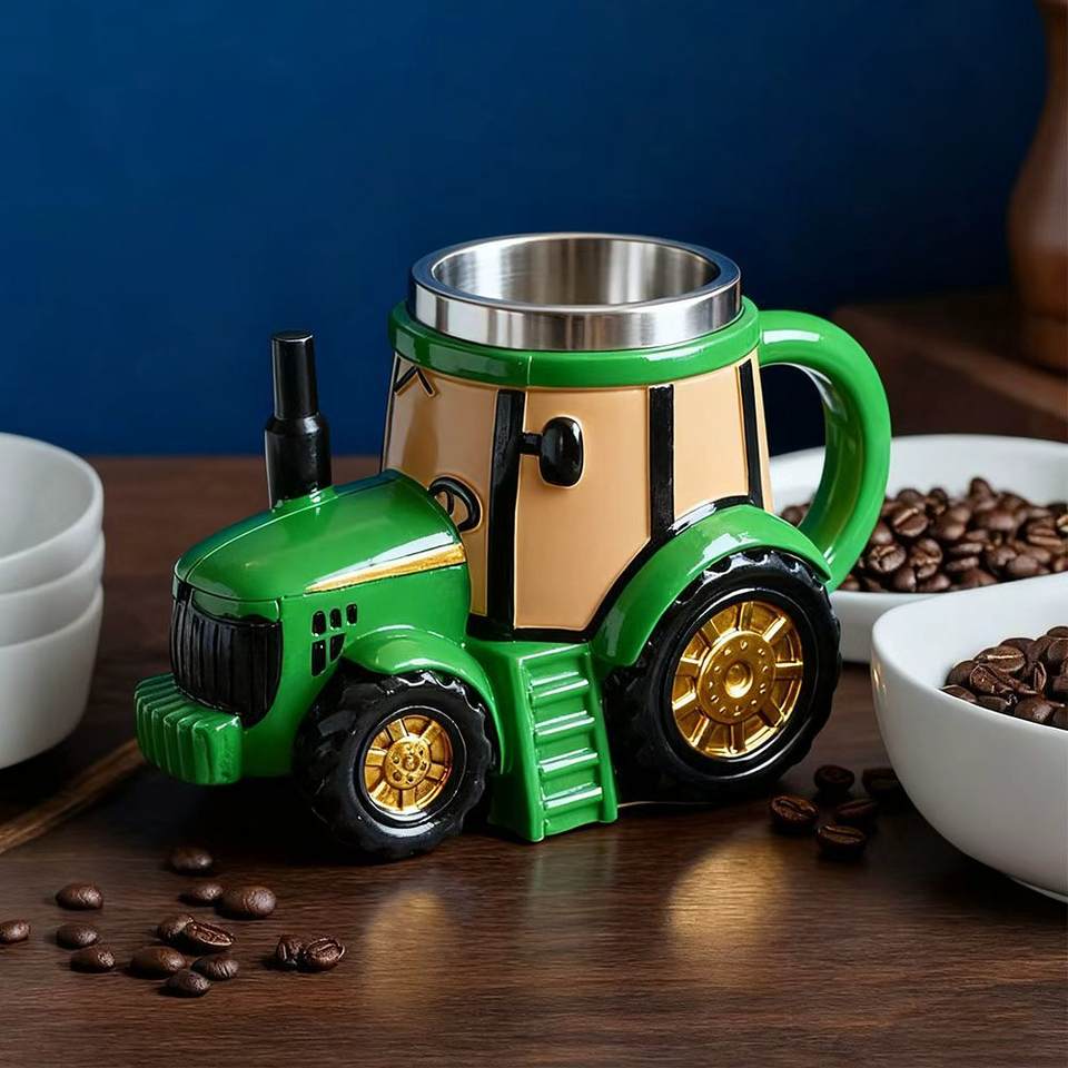 แก้วมัคทรงรถแทรกเตอร์สีเขียวสไตล์วินเทจสำหรับงานเกษตรข้ามพรมแดน