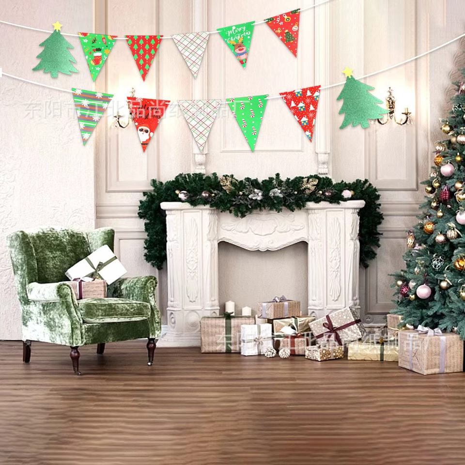 ธงคริสมาสต์แนววินเทจแบบดึงสำหรับตกแต่งงานปาร์ตี้สุขสันต์วันคริสต์มาสรูปธงแกะสลัก