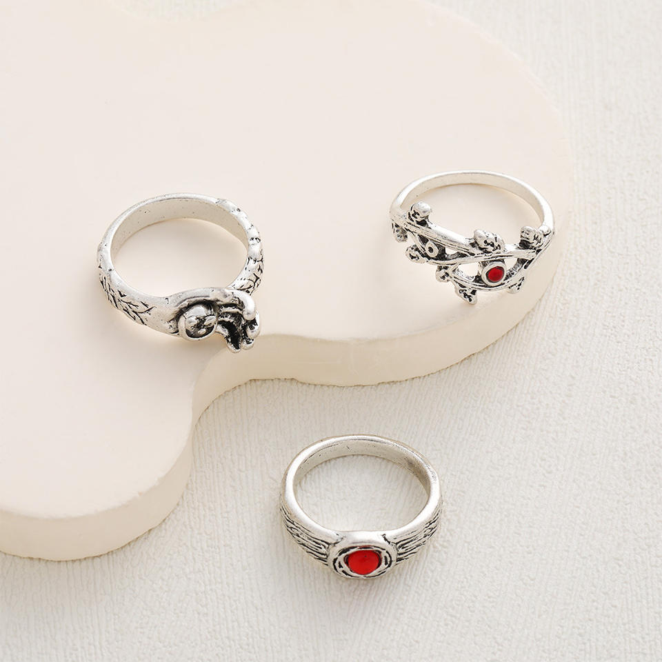 แหวนประดับรูปเรขาคณิตรูปดอกไม้แบบย้อนยุคด้วยมือทำจากโลหะผสมสินค้าต่างประเทศ