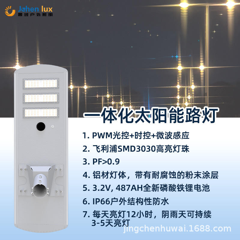 ไฟถนนโซลาร์เซลล์แบบรวมแสงข้ามพรมแดน พร้อมเซ็นเซอร์ตรวจจับความเคลื่อนไหว สำหรับพื้นที่ชนบทและเทศบาล ความสว่างสูง ใช้หลอดไฟ LED