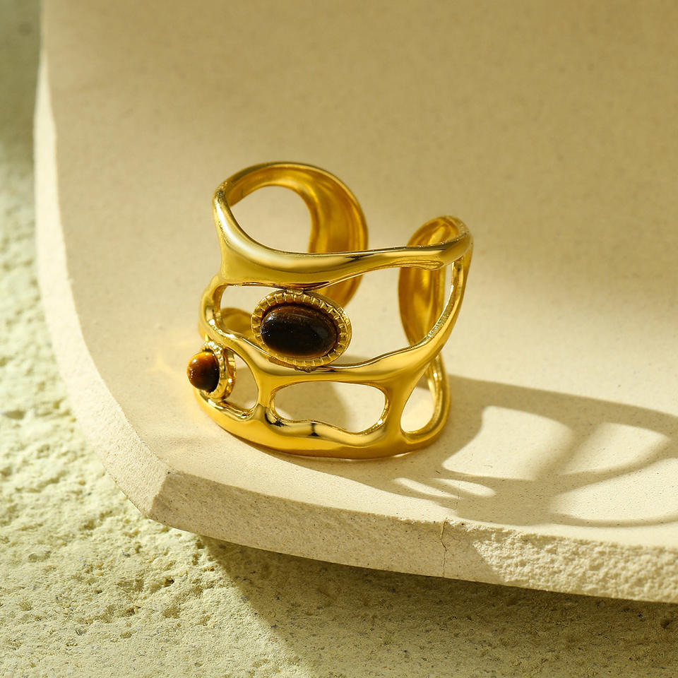 ดีไซน์ใหม่ข้ามพรมแดน สไตล์ยุโรปและอเมริกา ดีไซน์เฉพาะกลุ่ม หรูหราเบาๆ สีโมแอนเดลลี แบบเปิด แหวนไม่ซีดจาง