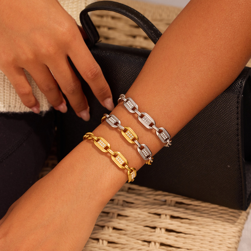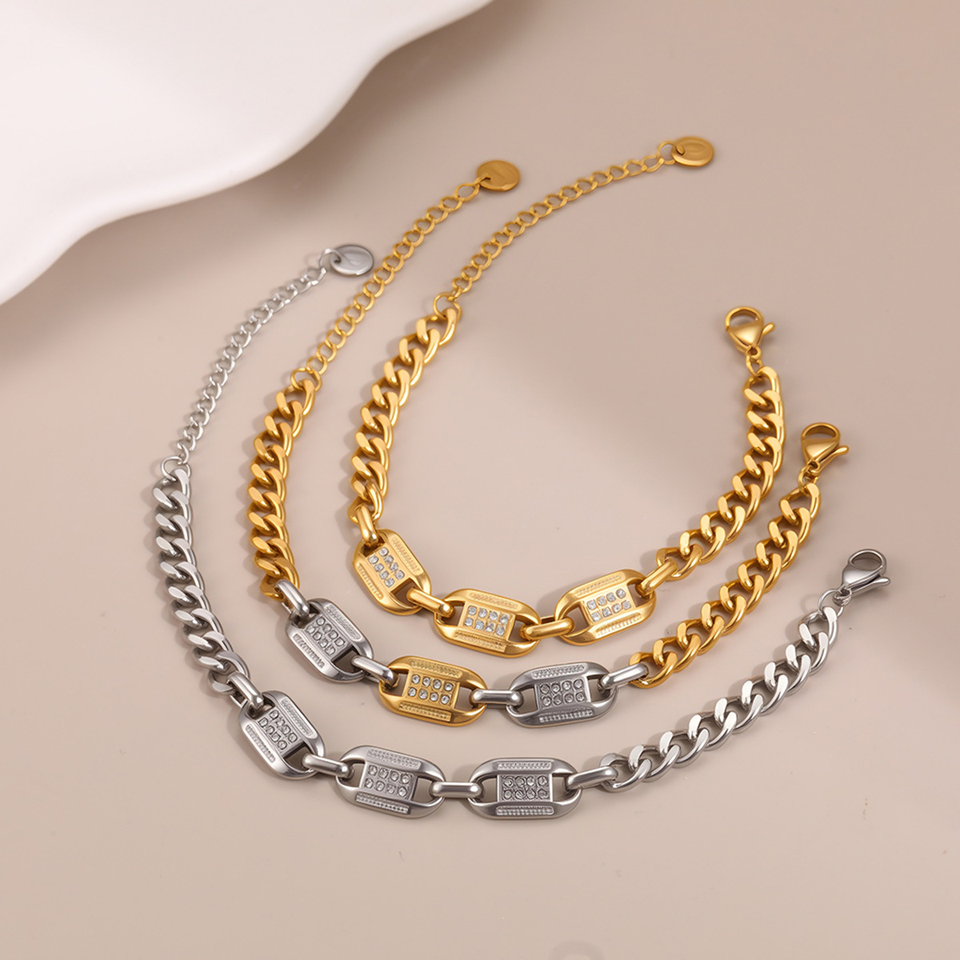 สร้อยข้อมือไทเทเนียมและเหล็กดีไซน์ใหม่แบบข้ามพรมแดน ประดับเพชร - เครื่องประดับสุดหรูที่ไม่ซีดจาง
