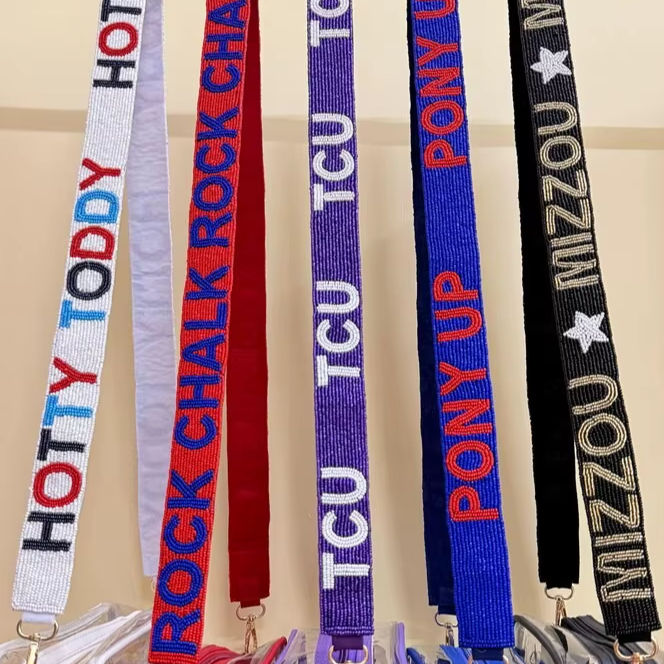 สายสะพายกระเป๋าแบบไขว้ประดับลูกปัด สำหรับกระเป๋าถือไปสนามกีฬา วันแข่งขัน มหาวิทยาลัย สายสะพายกระเป๋าแบบไขว้ประดับลูกปัดแบบกำหนดเองได้