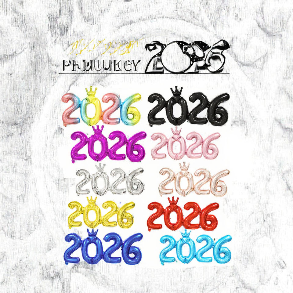 ลูกโป่งฟอยล์ตัวเลขปีใหม่ดิจิตอล Crown 2026 ขนาด 11-25 ซม. สำหรับผู้ใหญ่ งานปาร์ตี้วันปีใหม่ ฉากหลัง