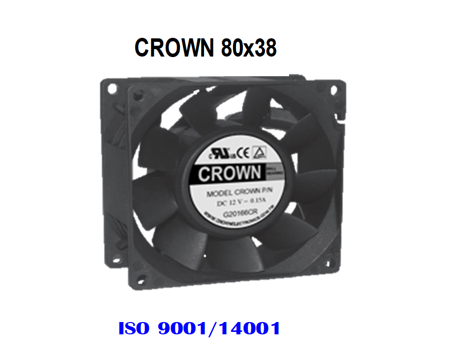 พัดลมแกนท่อไฟฟ้ากระแสตรงพร้อมลูกปืนใบพัดไฟฟ้าสำหรับอุปกรณ์อุตสาหกรรมคราวน์8038 SERVERT1