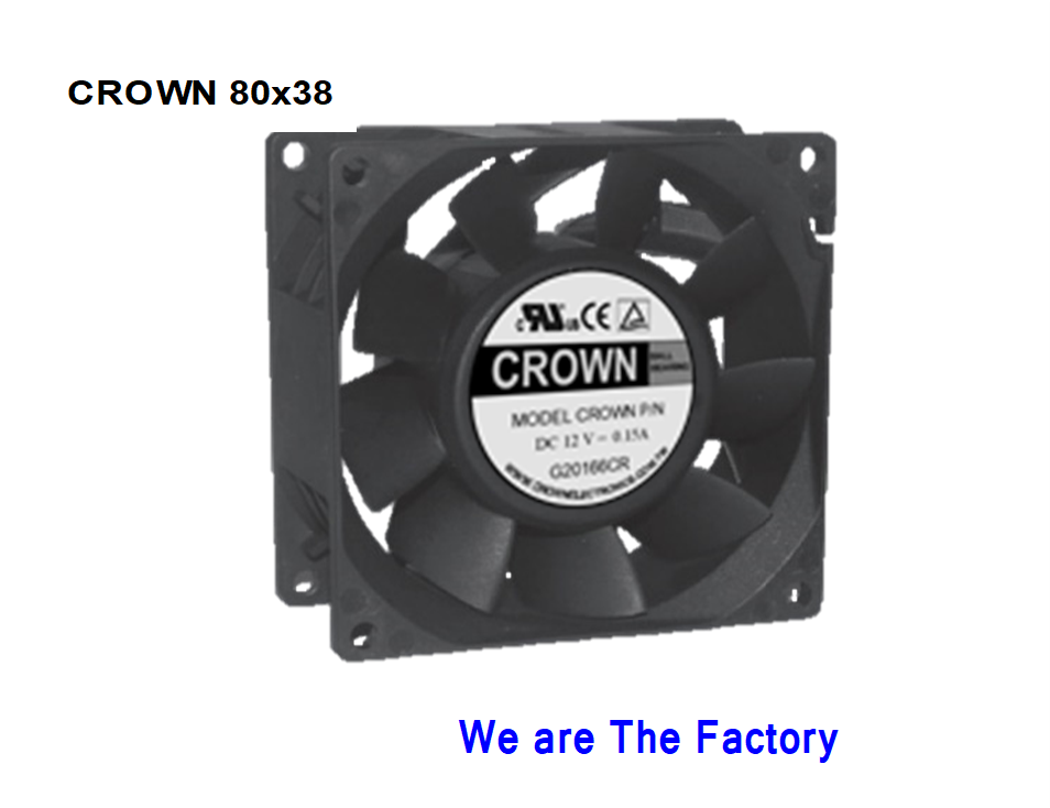 พัดลมแกน DC รุ่น Crown AGB08038_24M พร้อมใบพัดพลาสติกแบบลูกปืน รองรับ OEM สำหรับใช้งานในอุตสาหกรรม
