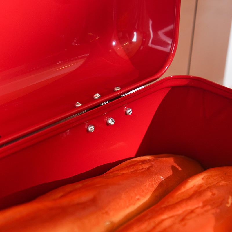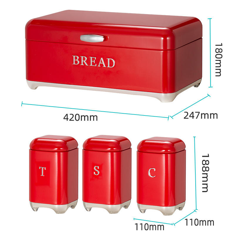 ชุดกล่องเก็บขนมปังทรงสี่เหลี่ยมผืนผ้าสีแดง ฝาเปิดปิดได้ ป้องกันฝุ่น กล่องเก็บขนมปังในครัว
