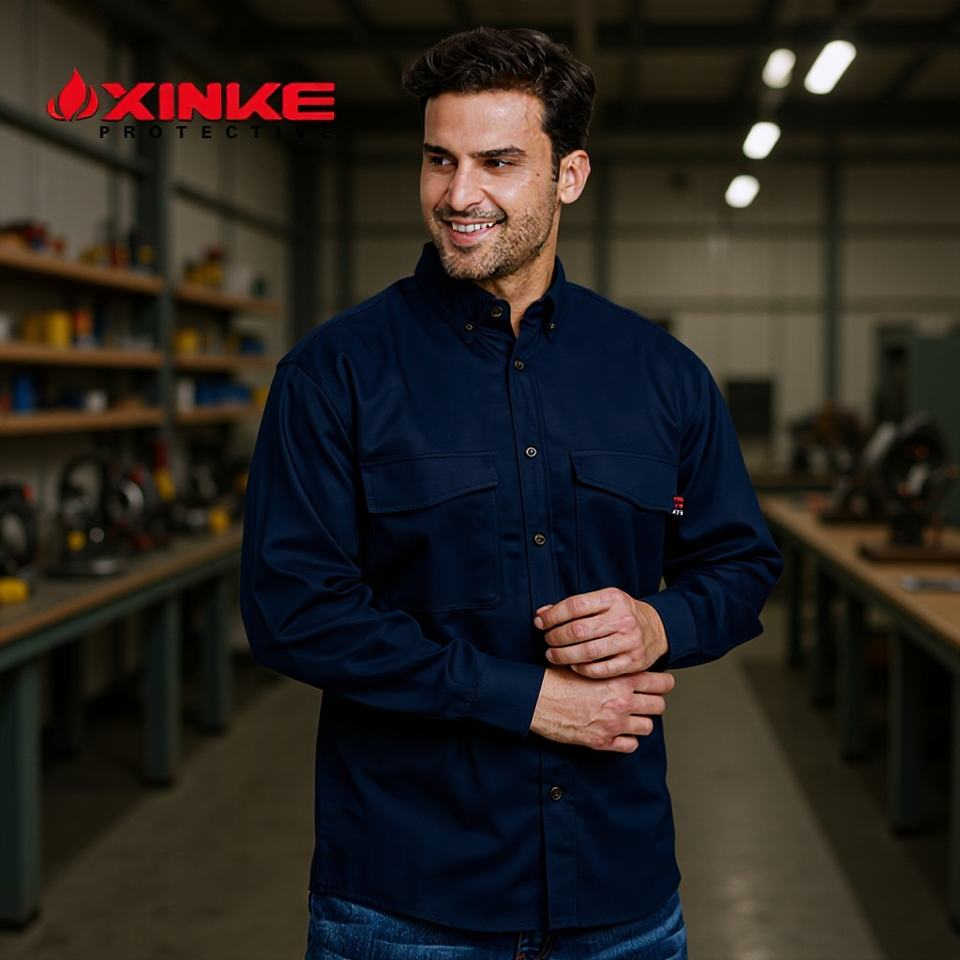 เสื้อทำงานทนไฟ Crown HRC2 14calcm2 ผ้าไนลอนคอตตอน ทรงปกติ เสื้อผ้าเพื่อความปลอดภัย