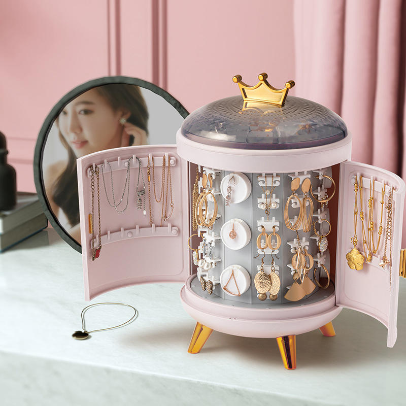 กล่องใส่เครื่องประดับรูปมงกุฎ 25 ลิตร พร้อมฝาปิดและขาตั้งสีทอง สำหรับเก็บแหวน สร้อยคอ ต่างหู