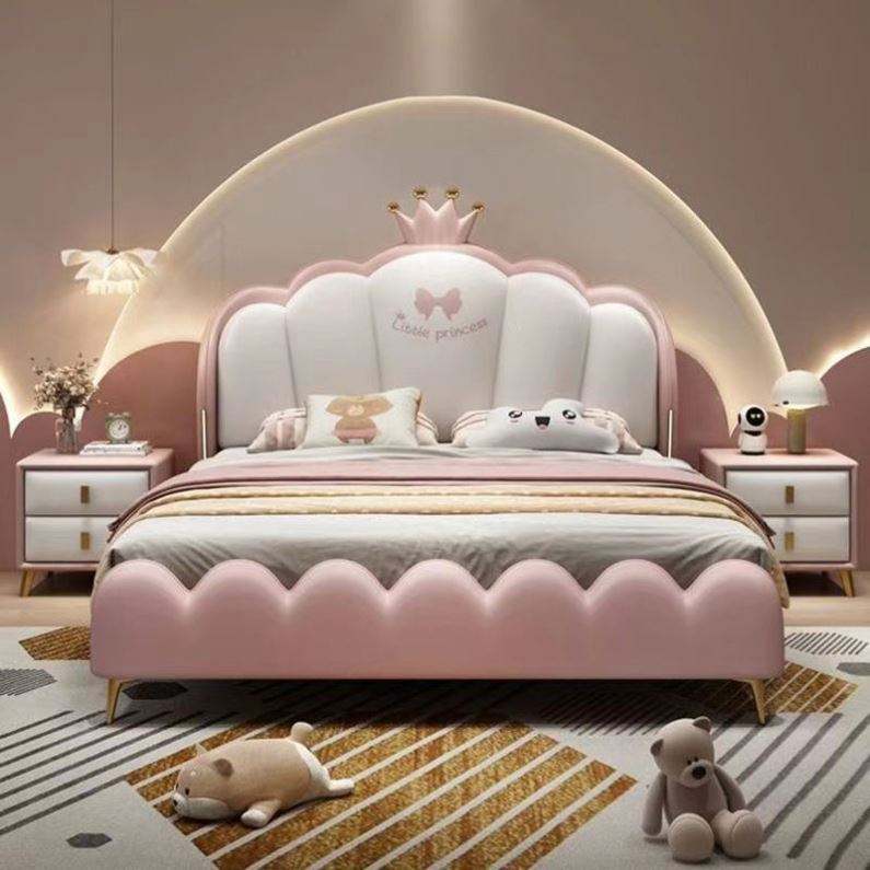 เตียงเด็กเจ้าหญิง 1.5 ม. และ 1.8 ม. เตียงเดี่ยวและเตียงคู่หุ้มผ้าไม้เนื้อแข็งสำหรับเด็กผู้หญิง เฟอร์นิเจอร์ห้องนอนสุดฝัน