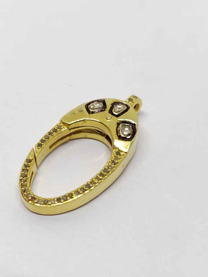 ตะขอก้ามปูกุ้งมังกรทำมือรูปมงกุฎเงินแท้925ชิ้น Polki & ปูเพชรชุบทอง40x20MM