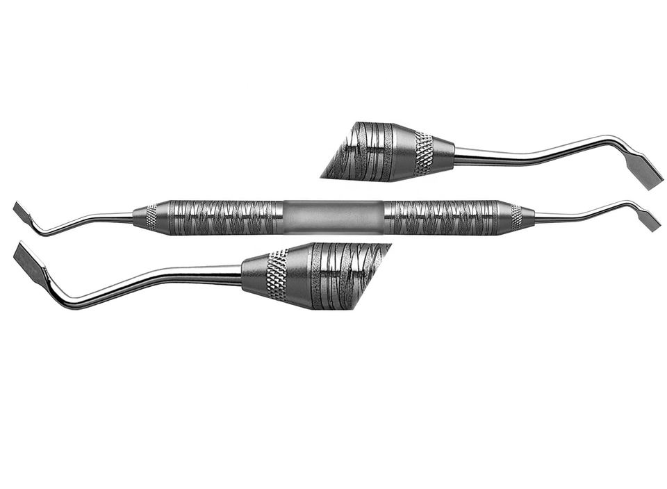 เครื่องมือถ่างครอบฟัน DENTRIC IMPLANTS แบบสองด้าน ใช้แรงดันด้วยมือ สีเงิน ปลายบาง ได้รับการรับรองมาตรฐาน CE บรรจุ 1 ชิ้น/แพ็ค