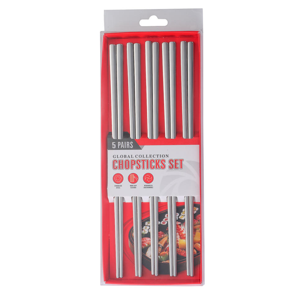 ชุดตะเกียบสแตนเลสทรงกลม 5 คู่ พร้อมกล่องของขวัญสีพื้น สำหรับใช้ในบ้าน ร้านอาหาร หรือเป็นของขวัญทางธุรกิจ
