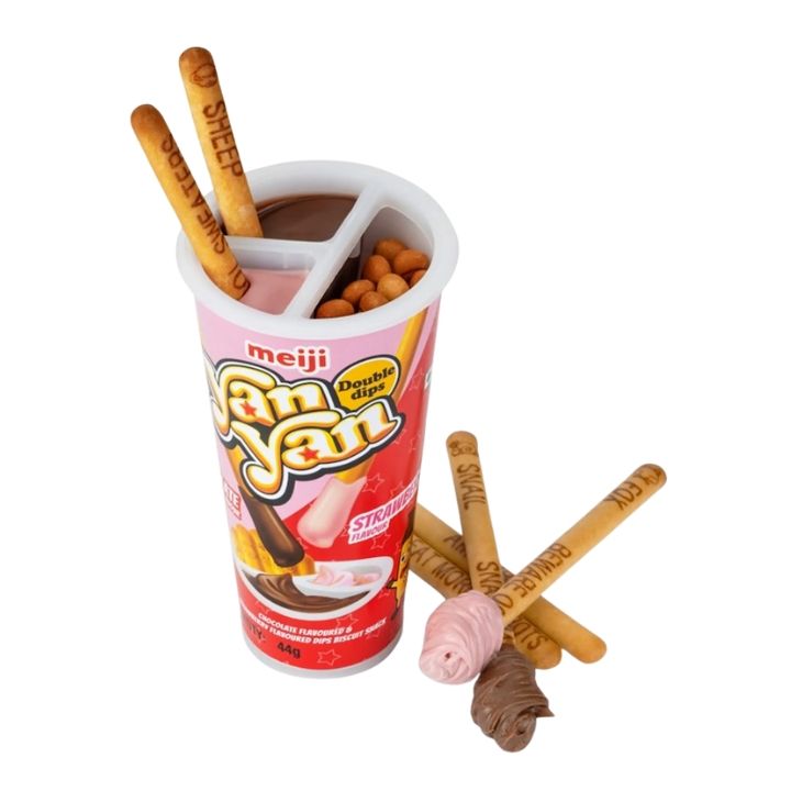บิสกิตแท่งกับช็อกโกแลตสตรอเบอร์รี่ครีมจุ่มชื่อพิเศษ