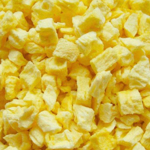 ขนมกรอบกรอบแช่แข็งสับปะรดแห้งลูกเต๋าชิ้นบดลูกบาศก์สับปะรดแห้งผลไม้อบแห้งด้วยสับปะรดเก็บรักษาแห้ง