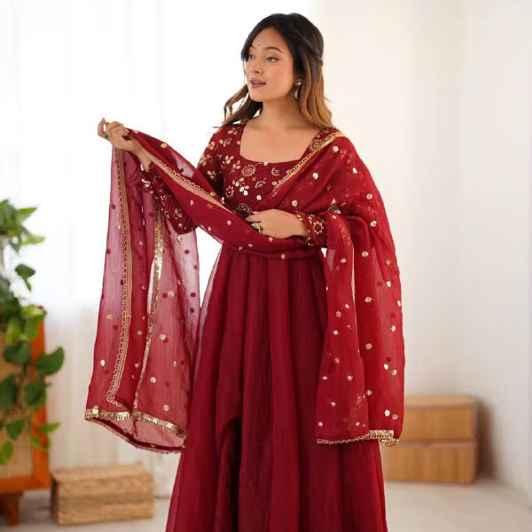 ชุดเดรสอินเดียผ้าโพลีเอสเตอร์เนื้อหนา แต่งขอบลูกไม้ แขนยาว ผ้าคลุมไหล่ทรงพลิ้ว ดีไซน์หรูหรา ใส่ได้ทุกฤดู รุ่น VISHNU K