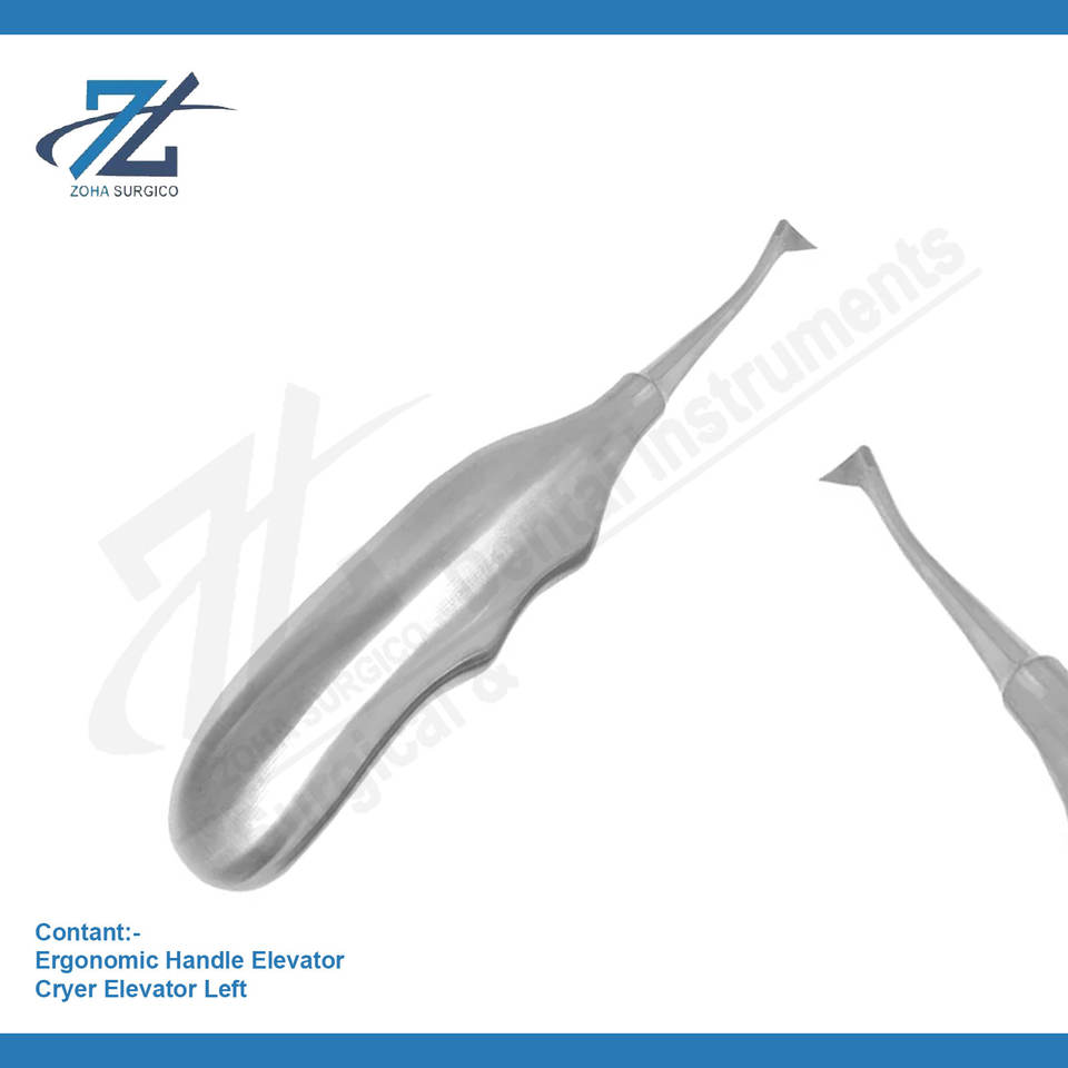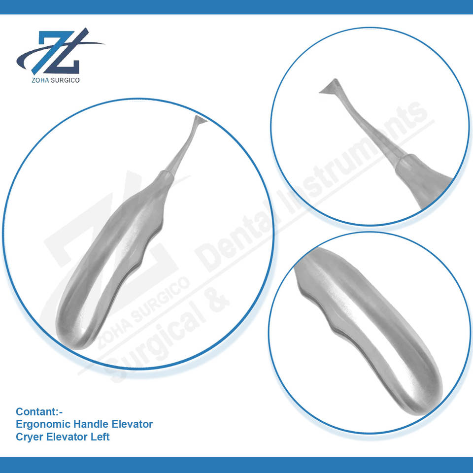 Cryer ลิฟต์ฟันด้านซ้ายลิฟต์ปลายยอดสเตนเลสด้วยมือตามหลักสรีรศาสตร์ด้ามจับกลวงเครื่องมือทันตกรรมจากปากีสถาน