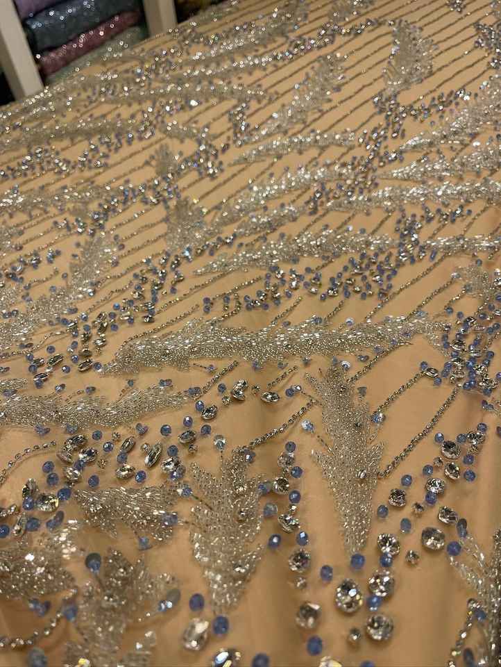 ผ้าปักลูกปัดคริสตัลลายลูกไม้ งานฝีมือสำหรับชุดแต่งงาน ชุดราตรี เสื้อผ้าดีไซเนอร์ชั้นสูง
