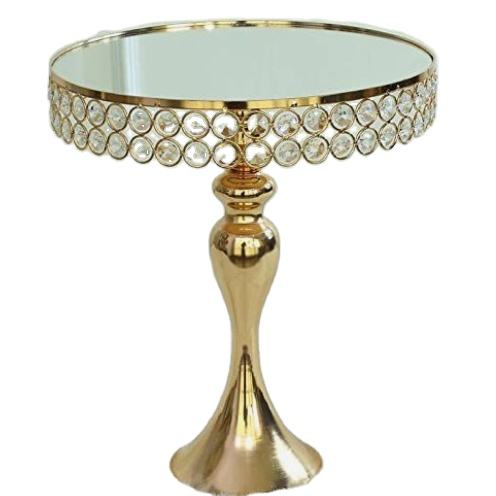 ลูกปัดคริสตัลขอบด้านบนจานเค้กโลหะตกแต่งเค้กหรูหรางานแต่งงาน Centerpieces สําหรับงานแต่งงานเค้ก