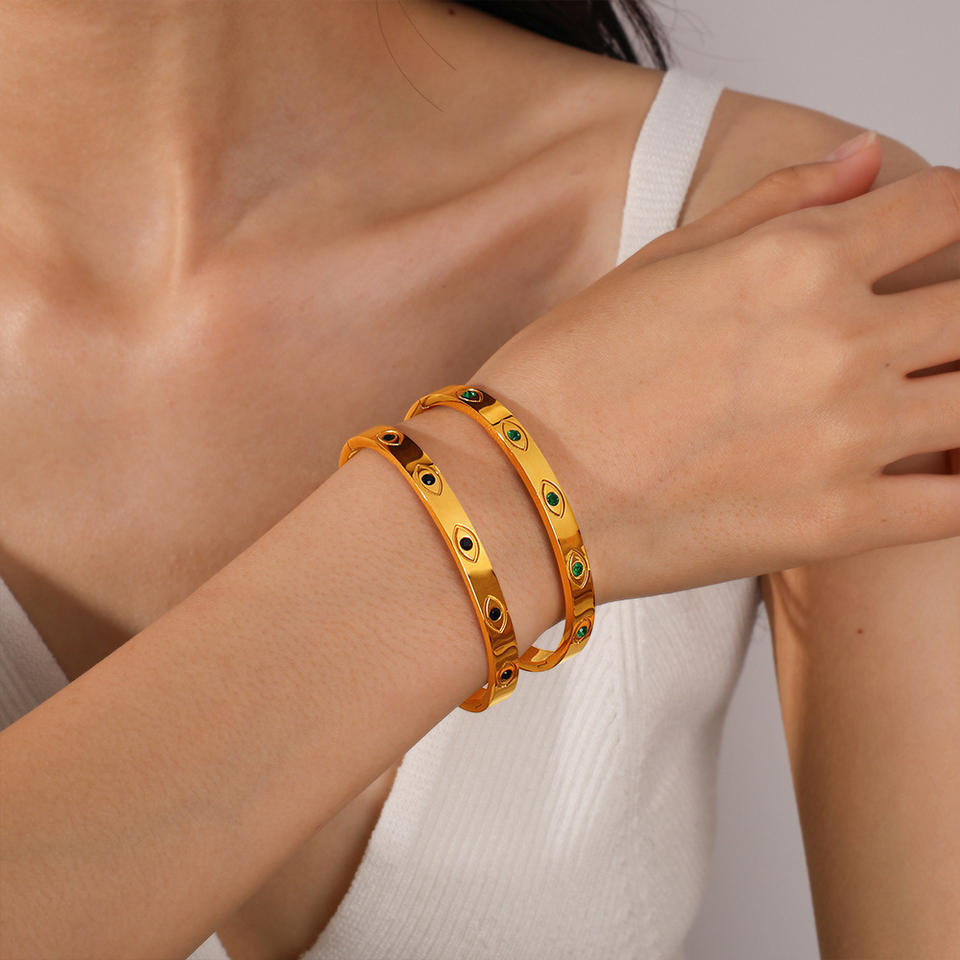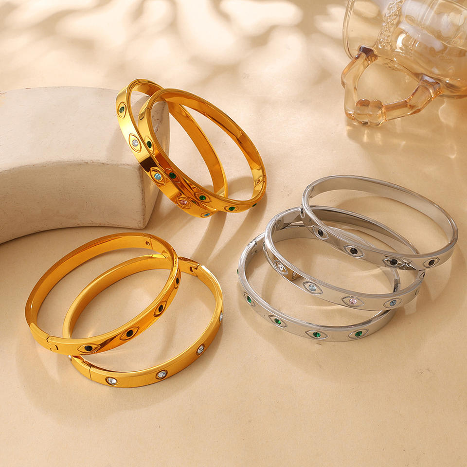 กำไลข้อมือคริสตัลฝังลายตาปีศาจ ตัวเรือนสแตนเลส สวมใส่ได้ทุกวัน เหมาะสำหรับทั้งชายและหญิง รุ่น SZ344