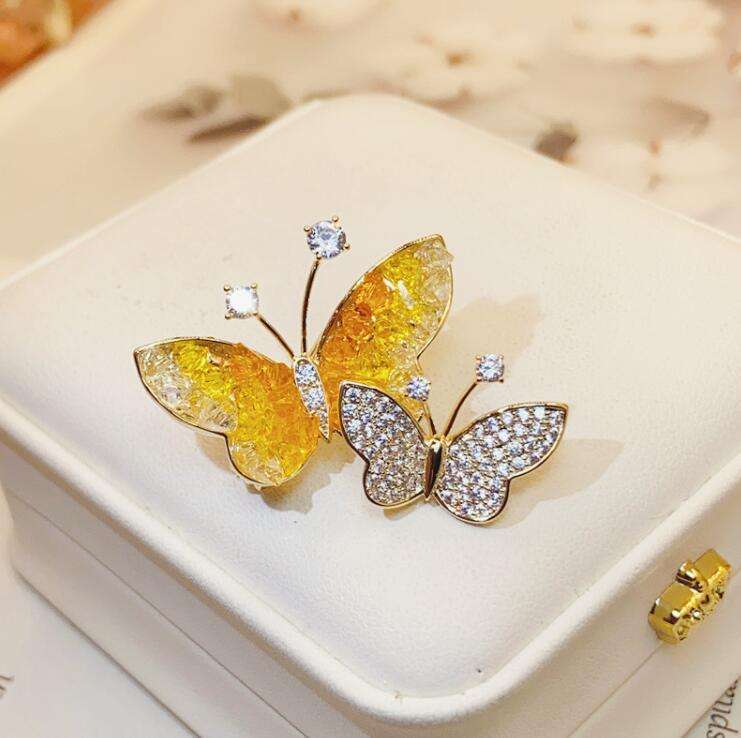 เข็มกลัดผีเสื้อคริสตัลรูปสัตว์น่ารักสำหรับงานปาร์ตี้ชุดเต้นรำของขวัญอัลลอยเสริม