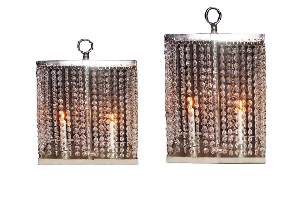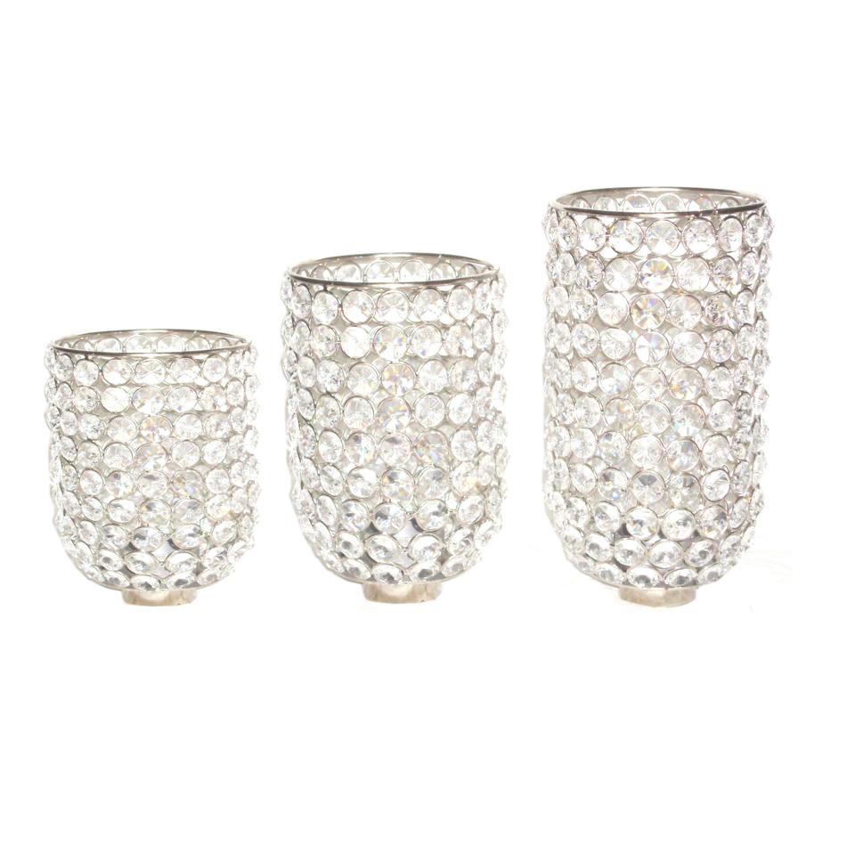 เชิงเทียนทีไลท์ทำด้วยมือทำจากโลหะชิ้นกลางคริสตัลชุดเชิงเทียน3ชิ้น