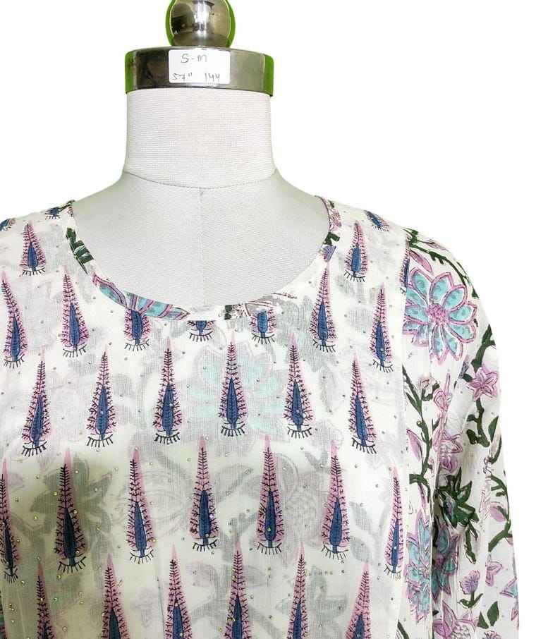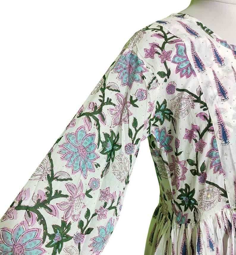 เดรสยาวคริสตัลคอตตอน 57 นิ้ว ลายดอกไม้พิมพ์มือสไตล์โบฮีเมียน สำหรับผู้หญิง เดรสแม็กซี่อินเดียสำหรับฤดูร้อน