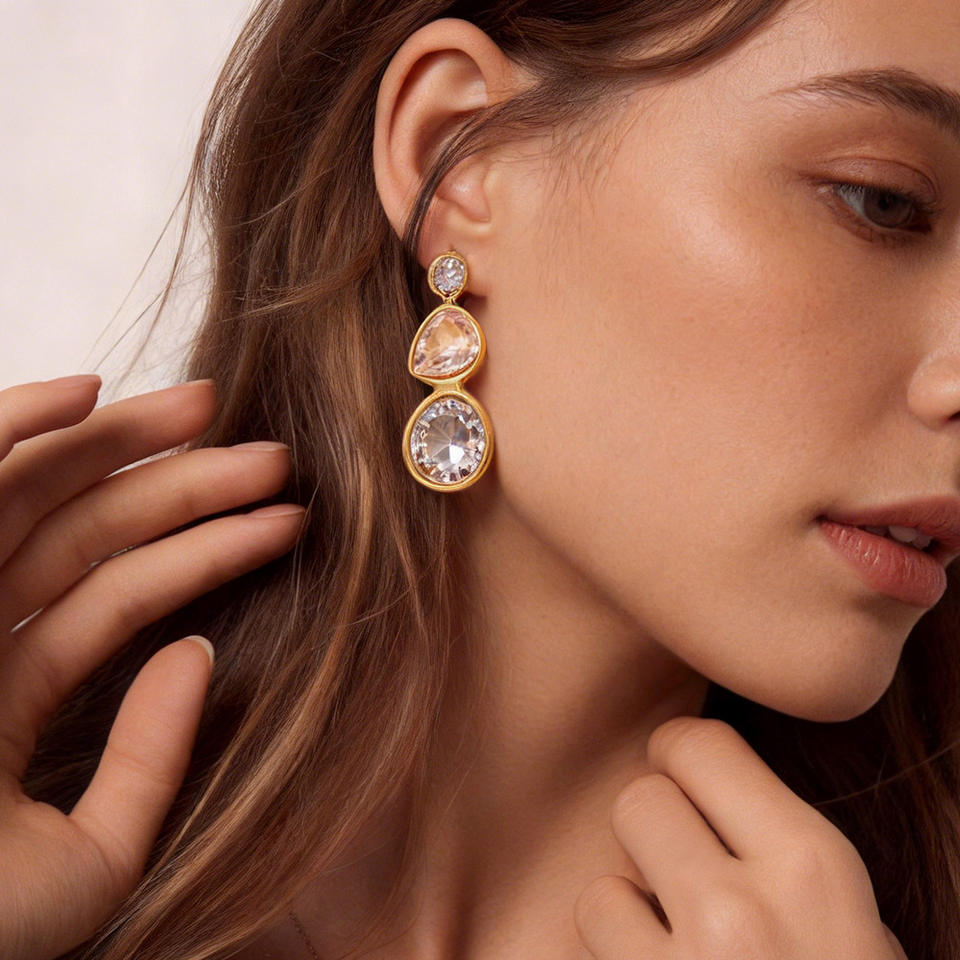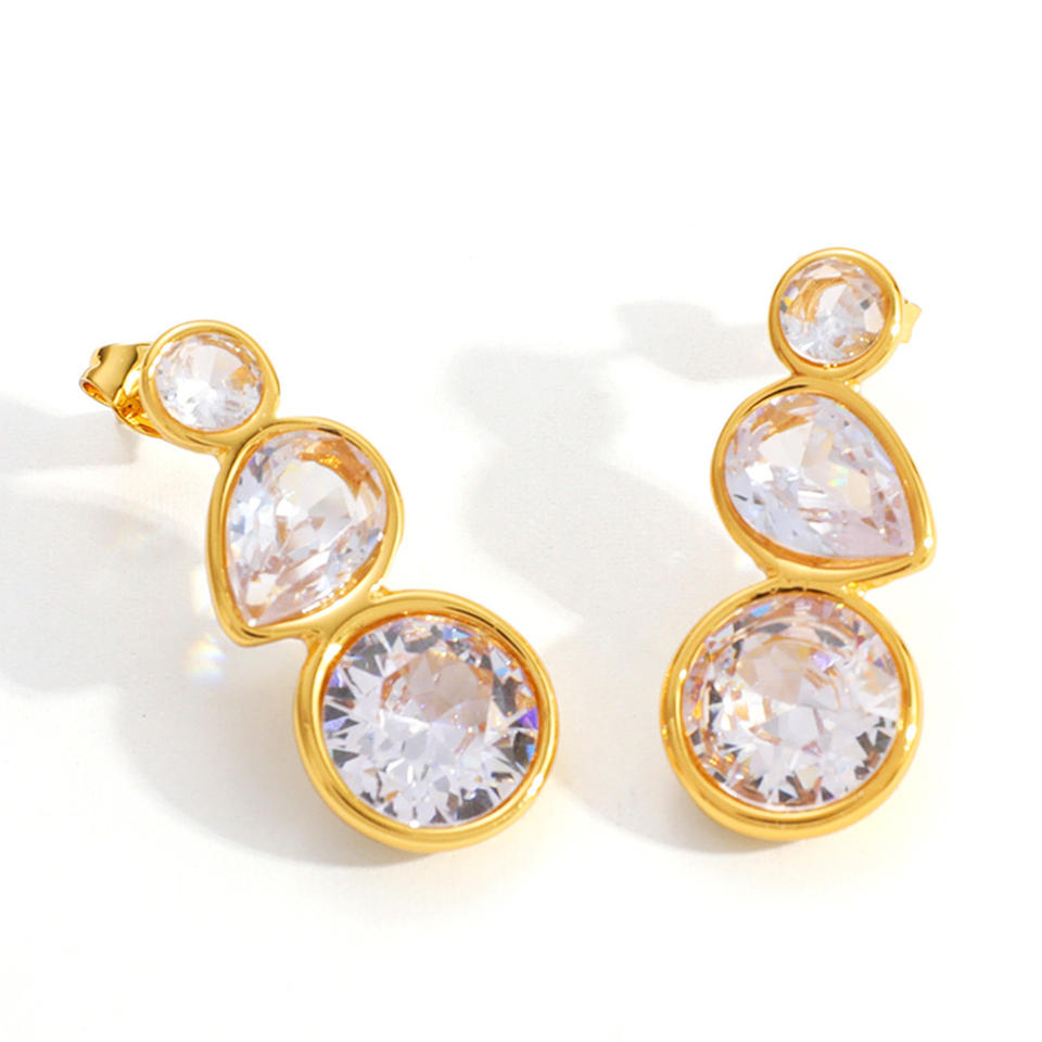 Crystal Drop Earrings 18k Gold Plated Teardrop Geometric Design Everyday Wear