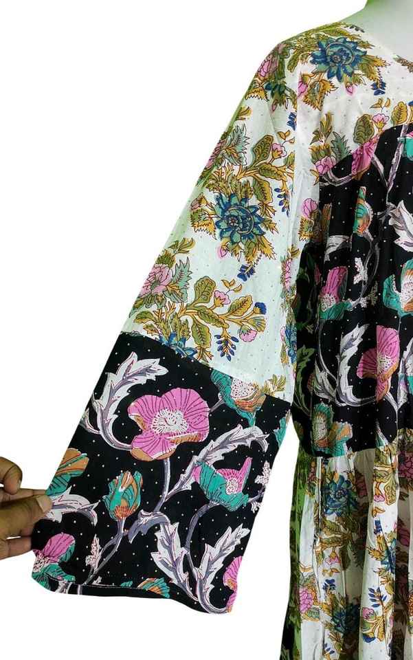 ชุดเดรสพิมพ์ลายดอกไม้คริสตัลสำหรับผู้หญิง ไซส์ S M ฤดูร้อน ผ้าฝ้ายอินเดีย ลายดอกไม้สไตล์โบฮีเมียน น้ำหนักเบา ยาว 57 นิ้ว