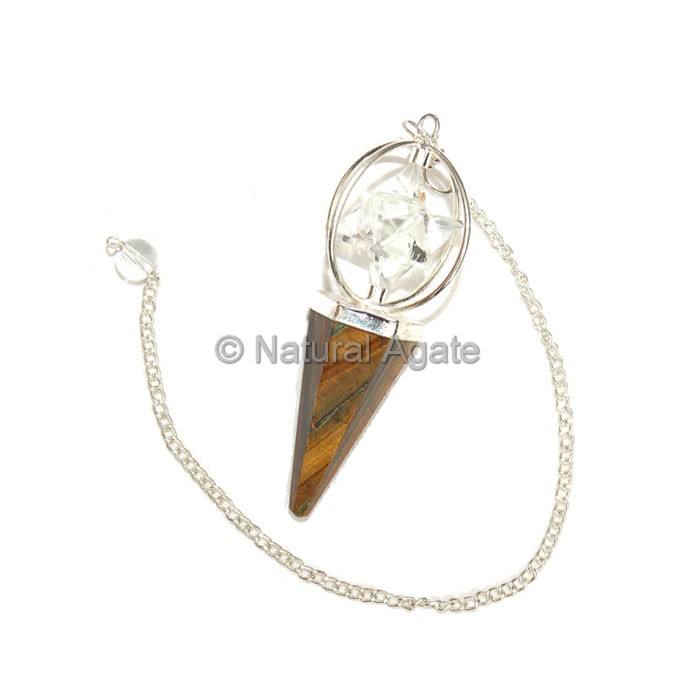 พลอยคริสตัลสำหรับรักษาพลังงานฟลูออไรต์สีน้ำตาล6เหลี่ยมพร้อมจี้โซ่เงิน