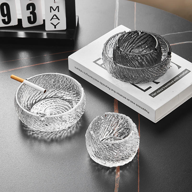 Crystal Glass Ashtray Round Modern Luxury Design For Home Office Decorative Gift Item