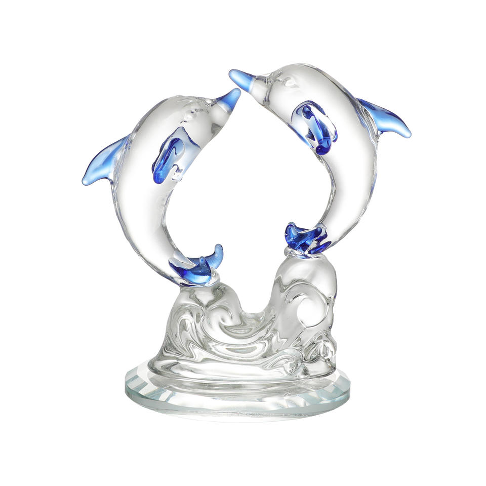 ตุ๊กตาปลาโลมาแก้วคริสตัล แกะสลักขัดเงา งานศิลปะพื้นบ้าน สีฟ้าใส เป็นมิตรกับสิ่งแวดล้อม สูง 90-100 มม. ของสะสม ตกแต่งบ้าน โต๊ะทำงาน