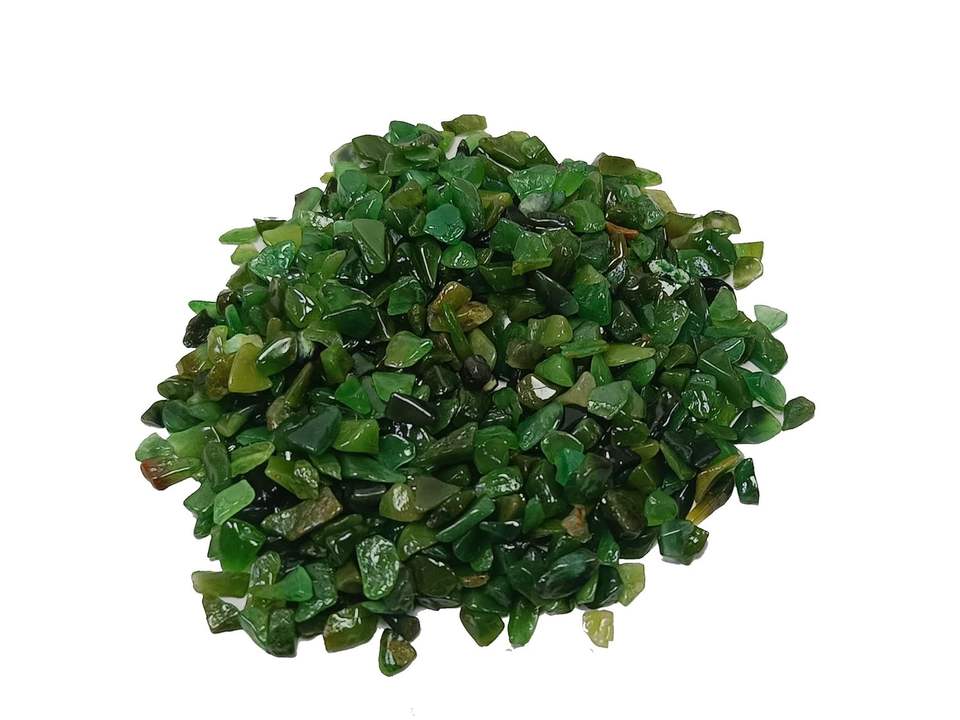หยกคริสตัลสีเขียวขัดเงาขนาด 5-7 มม. หินธรรมชาติสำหรับบำบัดรักษา ตกแต่งงานแต่งงานตามหลักฮวงจุ้ย