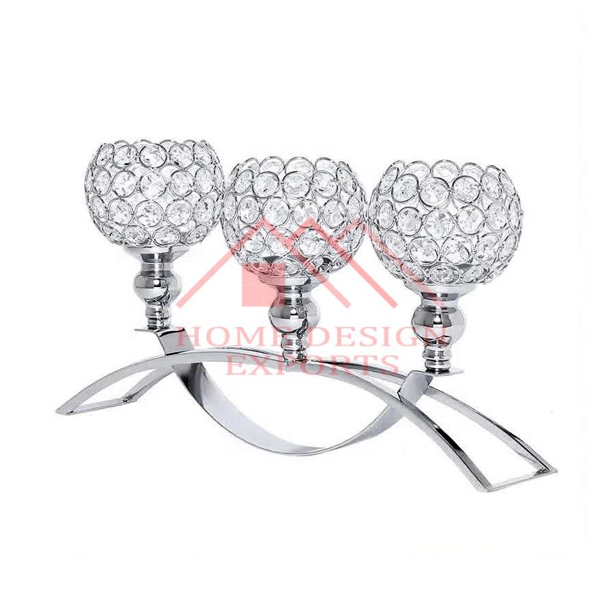 เชิงเทียนห้อยคริสตัลพร้อมลูกโลกคริสตัลสำหรับตกแต่งโต๊ะเชิงเทียนดีไซน์ล่าสุด