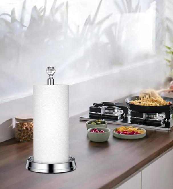 ที่ใส่กระดาษทิชชู่พร้อมหัวคริสตัลพร้อมที่จ่ายเหล็กและฐานวงกลมสำหรับห้องครัวรับประทานอาหารโดย acmi