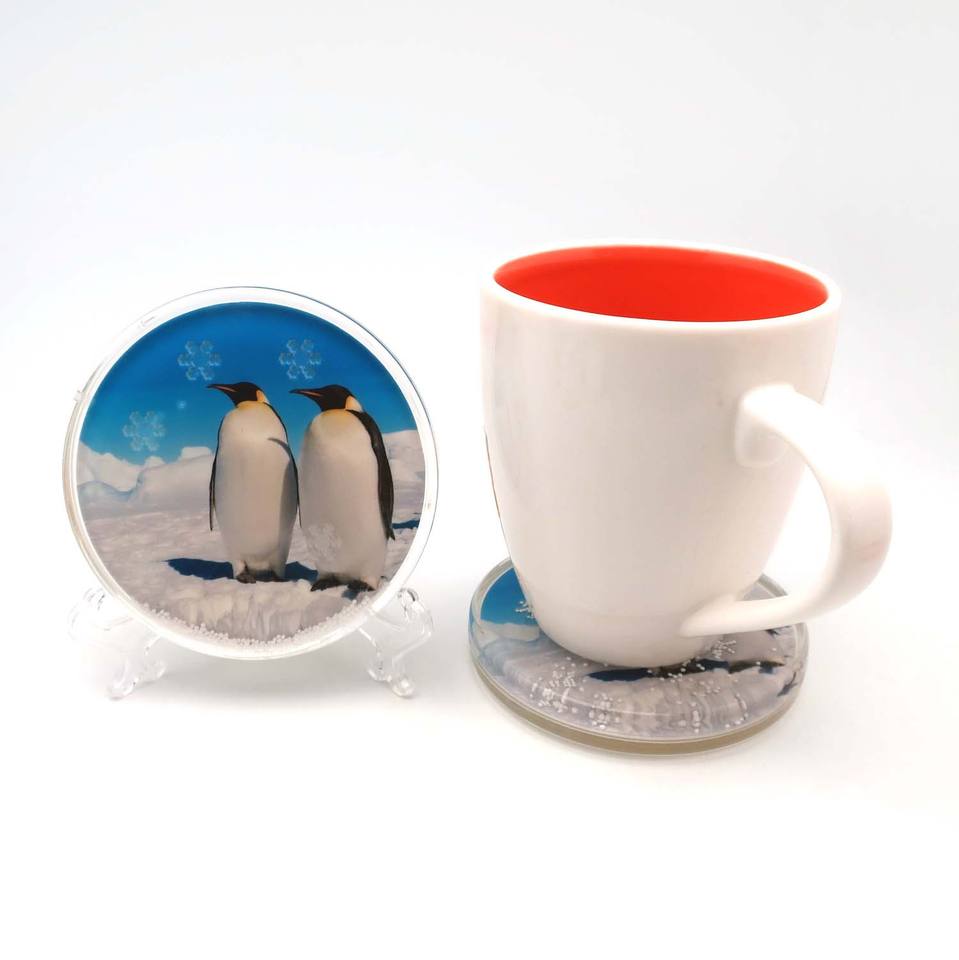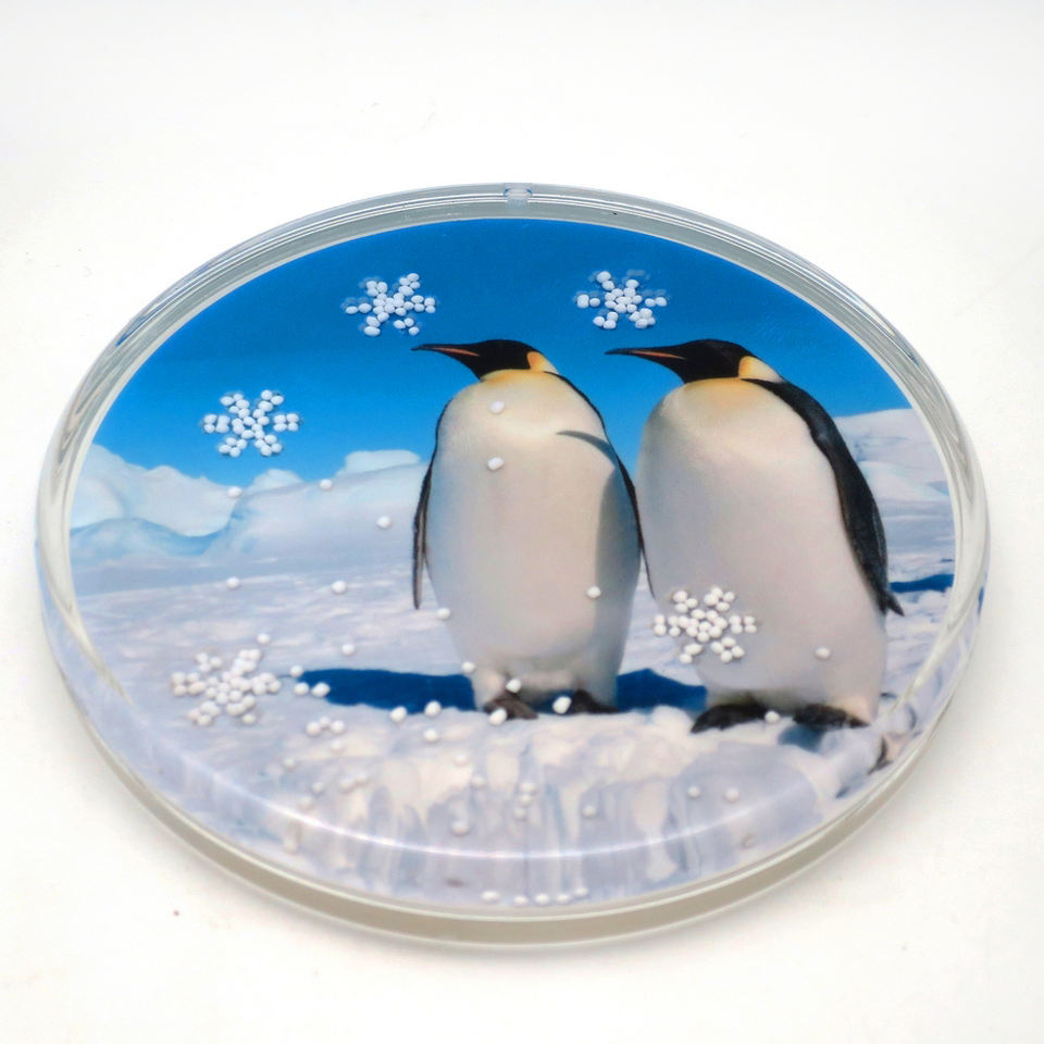 ถาดรองเครื่องดื่มคริสตัลขนาด4นิ้วลายเกล็ดหิมะและนกเพนกวินของขวัญคริสต์มาสสำหรับฤดูหนาว