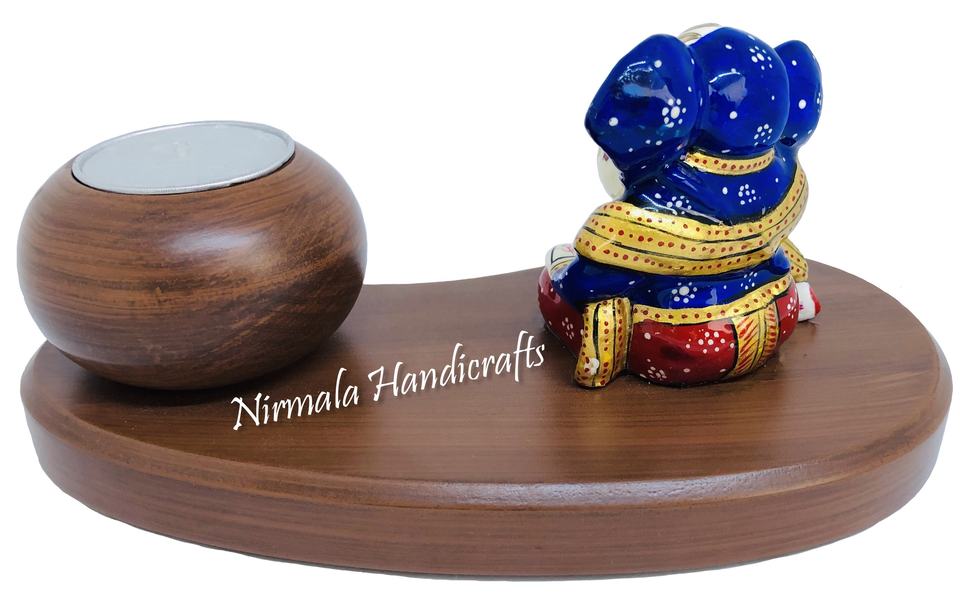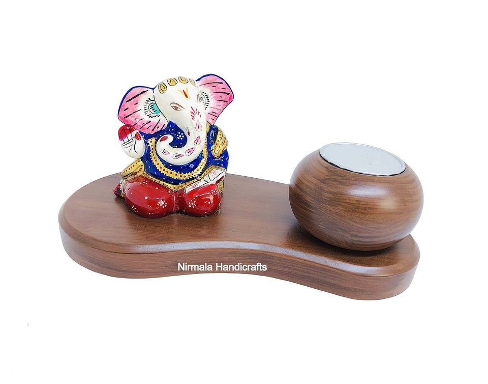 งานฝีมือโลหะ เคลือบอีนาเมล ที่วางเทียนรูปพระพิฆเนศ Pawti พร้อมที่ใส่เทียน