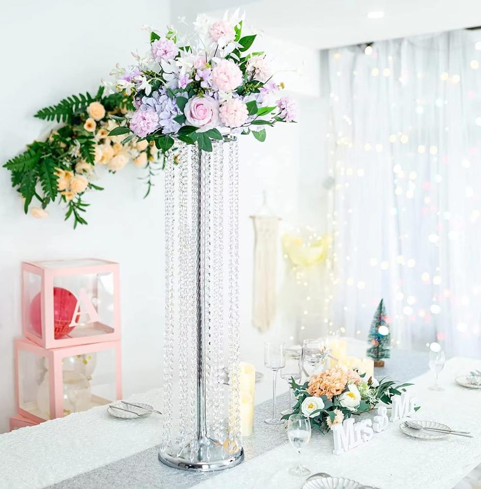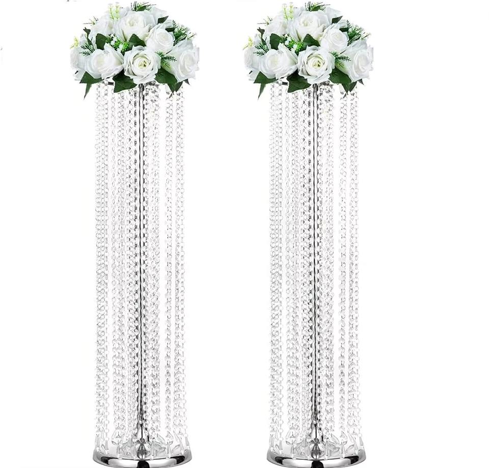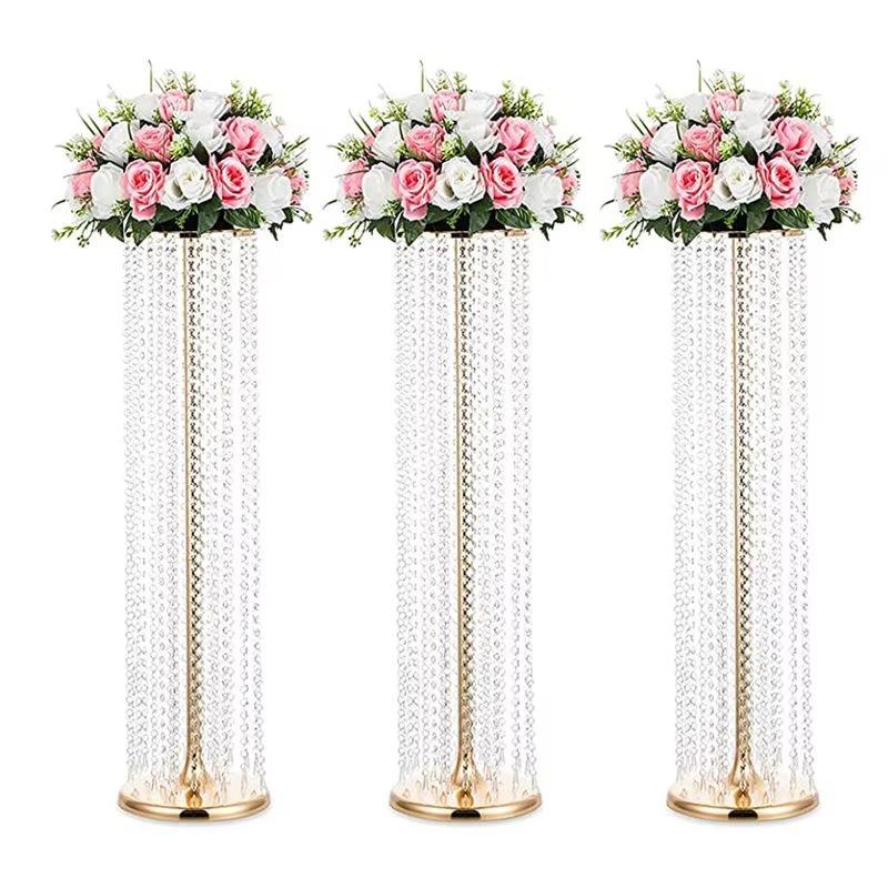 ของตกแต่งงานแต่งงานคุณภาพสูงสไตล์คริสตัลทันสมัย ตกแต่งโต๊ะงานแต่งงานอย่างหรูหรา ขาตั้งดอกไม้สีทอง/สีเงินทรงสูง จัดดอกไม้อะคริลิค