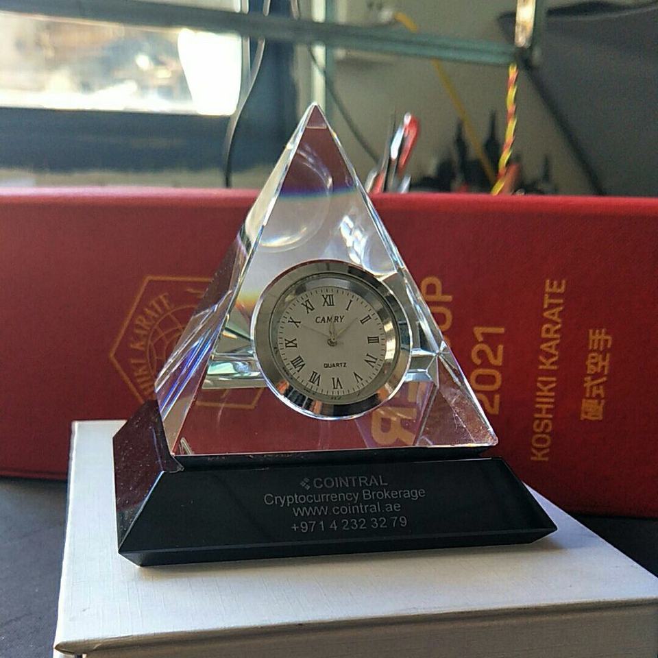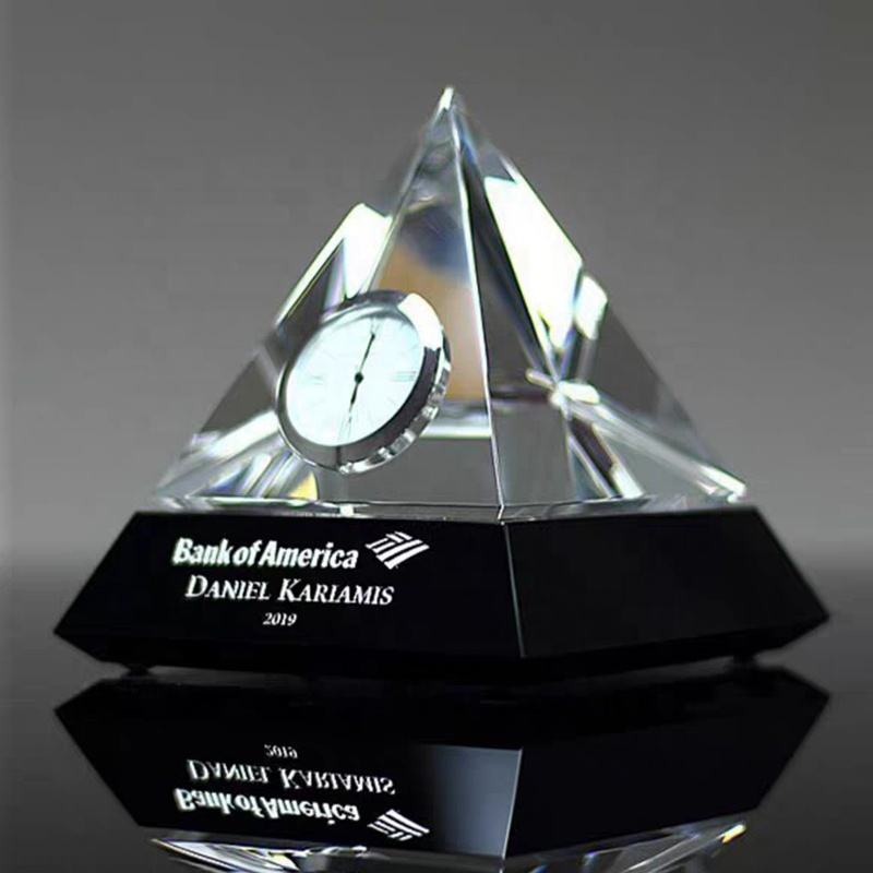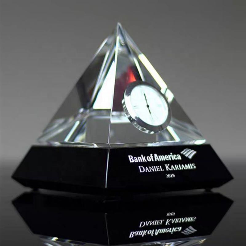 ตราคริสตัลรูปปิรามิดหรือนาฬิกาคริสตัล K9 รางวัลคริสตัลขนาดเล็ก ของที่ระลึกครบรอบ