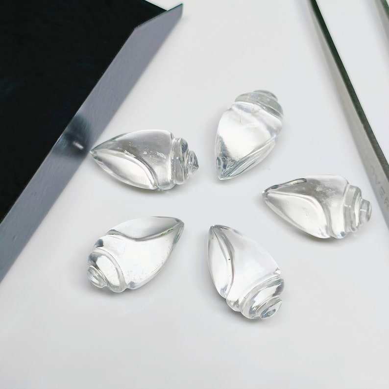 คริสตัลควอตซ์รูปทรงเปลือกหอยสังข์แกะสลักด้วยมือ ขนาด 18x10 มม.