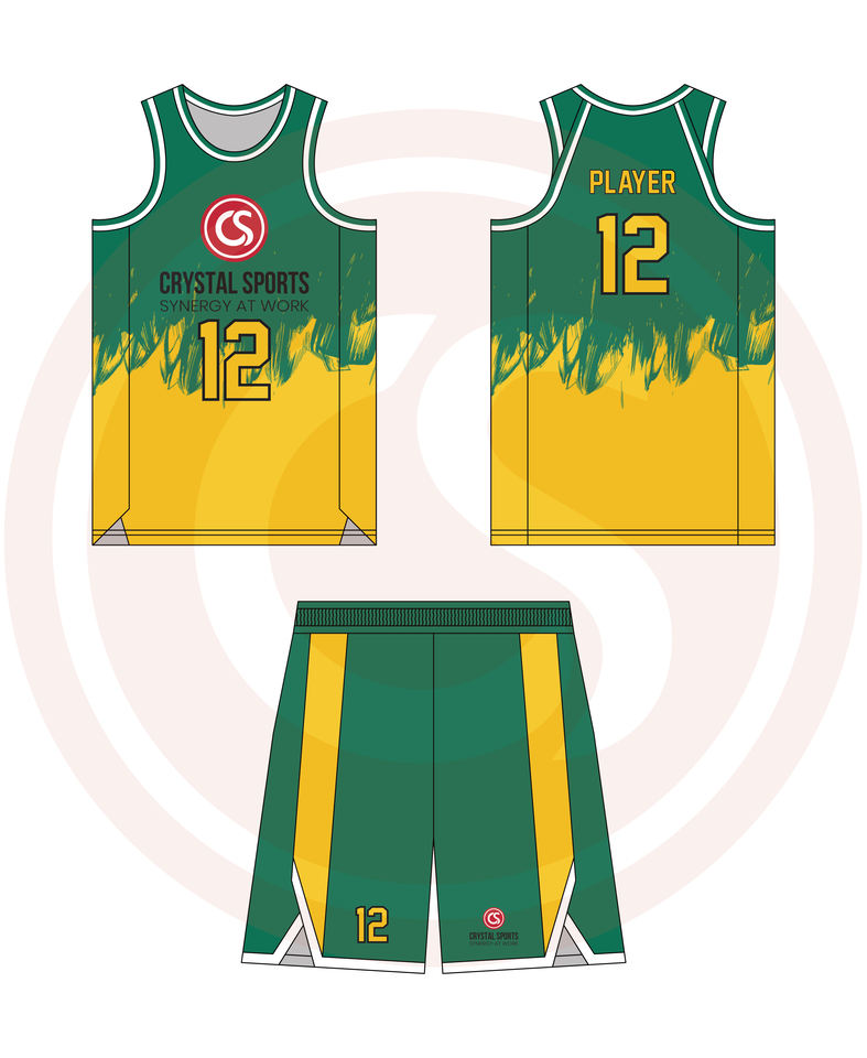 ชุดยูนิฟอร์มบาสเก็ตบอลคริสตัลสปอร์ตขายส่ง ชุดเสื้อและกางเกงขาสั้นสำหรับฝึกซ้อมและแข่งขัน รับสั่งทำสี หมายเลข ชื่อ และชื่อทีม