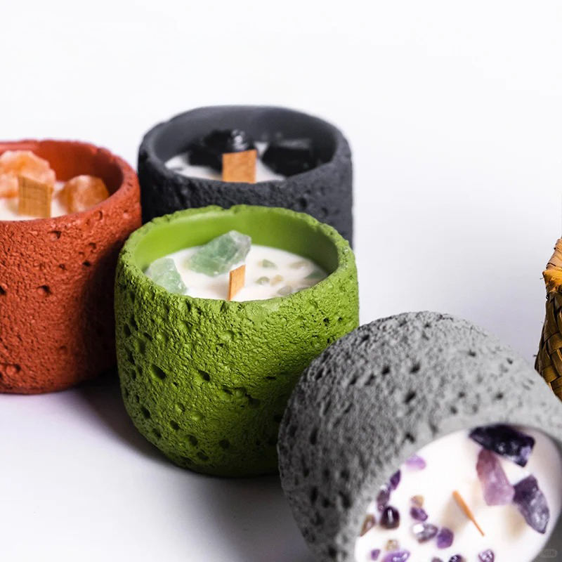 เทียนหอมประดับทำจากหินคริสตัลเทียนหอมไส้ตะเกียงไม้หอมนาน