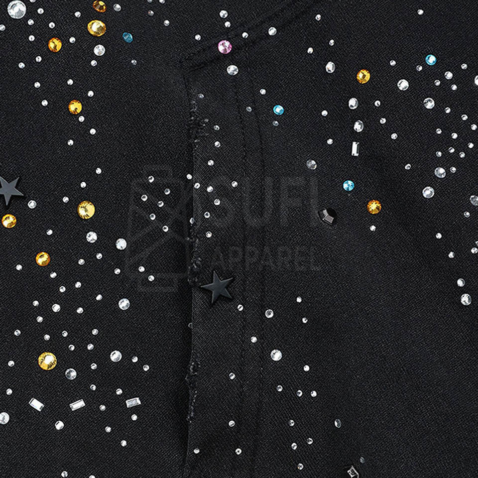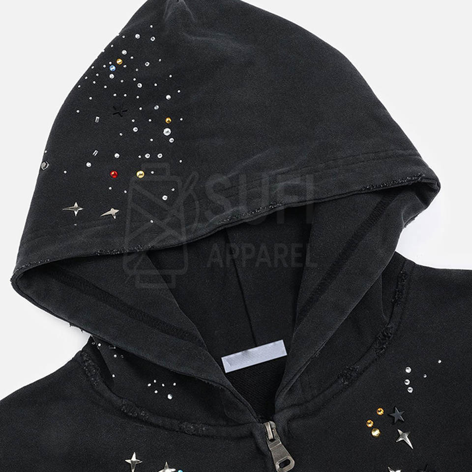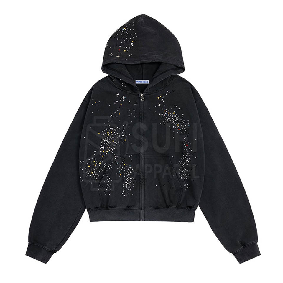 เสื้อฮู้ดลายคริสตัลประดับเพชรเทียมสำหรับผู้ชาย ผ้าฝ้าย 100% สวมใส่สบาย
