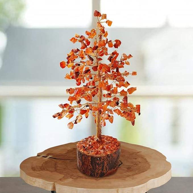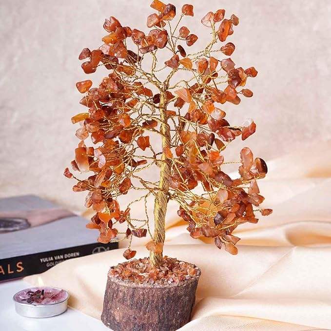 ต้นไม้คริสตัลที่มีหินคาร์เนเลียนสีแดงธรรมชาติ-บอนไซทำด้วยมือสำหรับการตกแต่งและพื้นที่โยคะ | การรักษาพลังงานจักระ