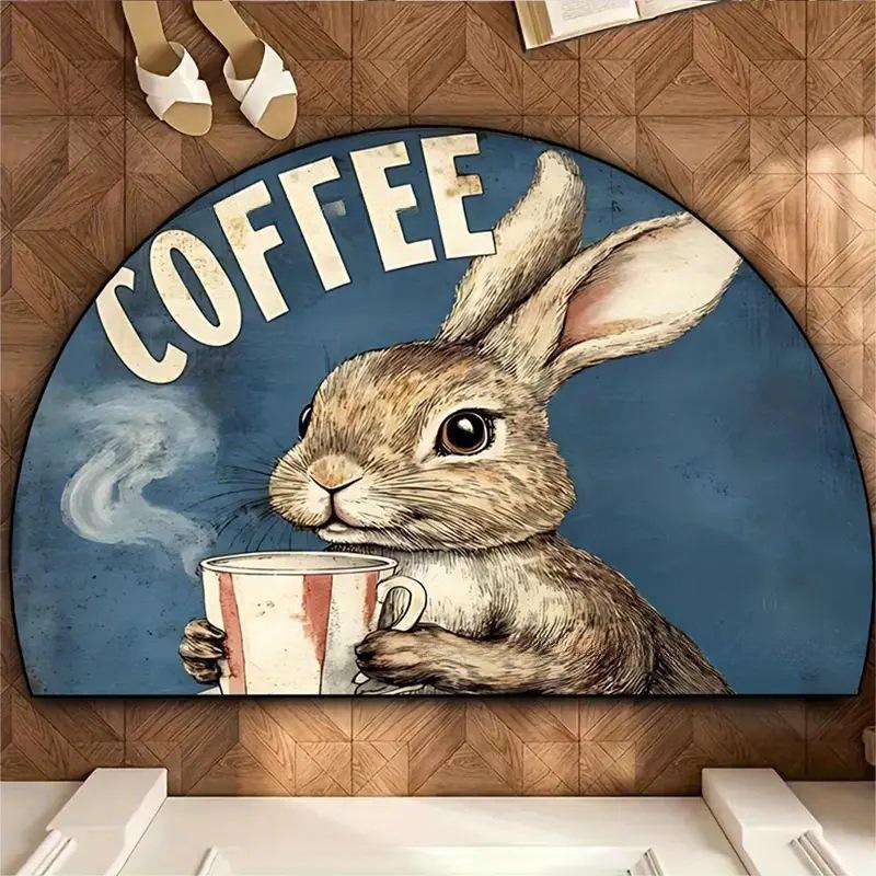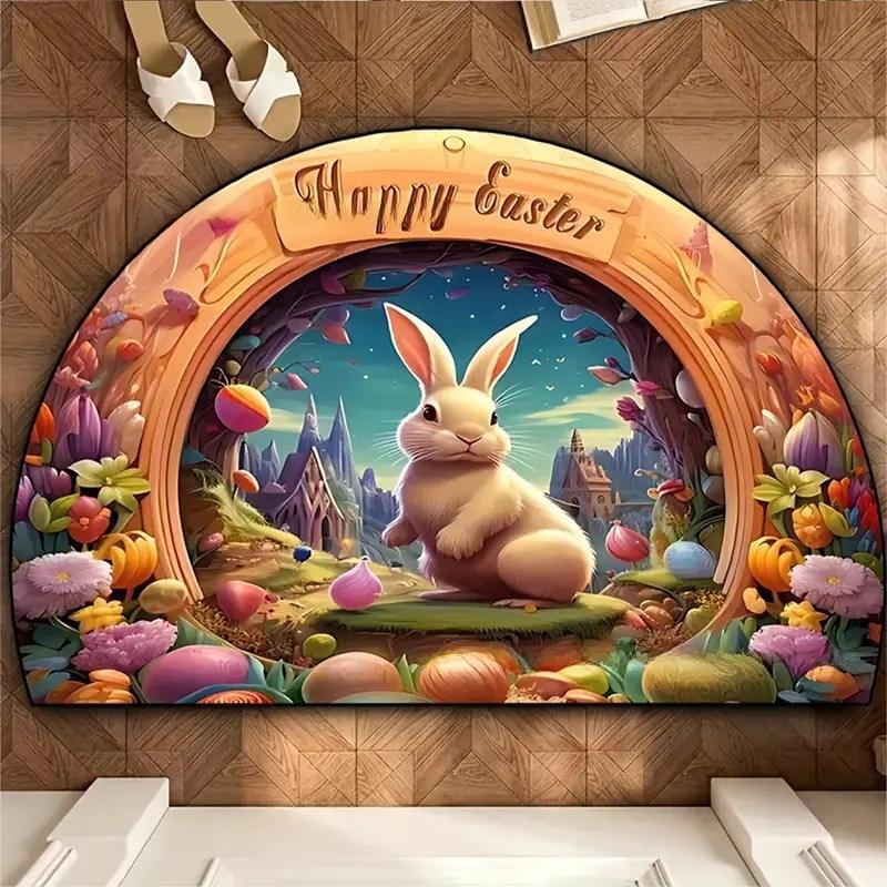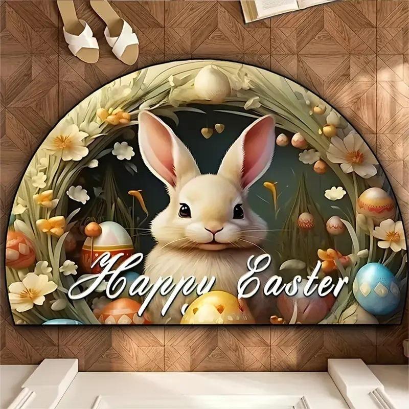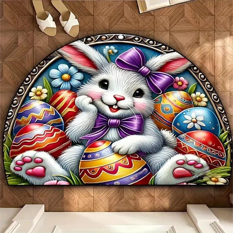 พรมเช็ดเท้าคริสตัลเวลเวทลายกระต่ายอีสเตอร์รูปไข่ครึ่งวงกลม สำหรับกลางแจ้ง กันคราบสกปรก ลายสัตว์น่ารัก ฤดูหนาว 2025